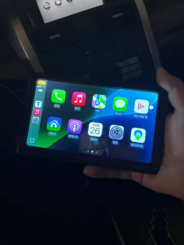 Muy simple. Se enlaza por Wi-Fi o Bluetooth, y luego activa CarPlay o Android Auto para mostrar tus apps en la pantalla.