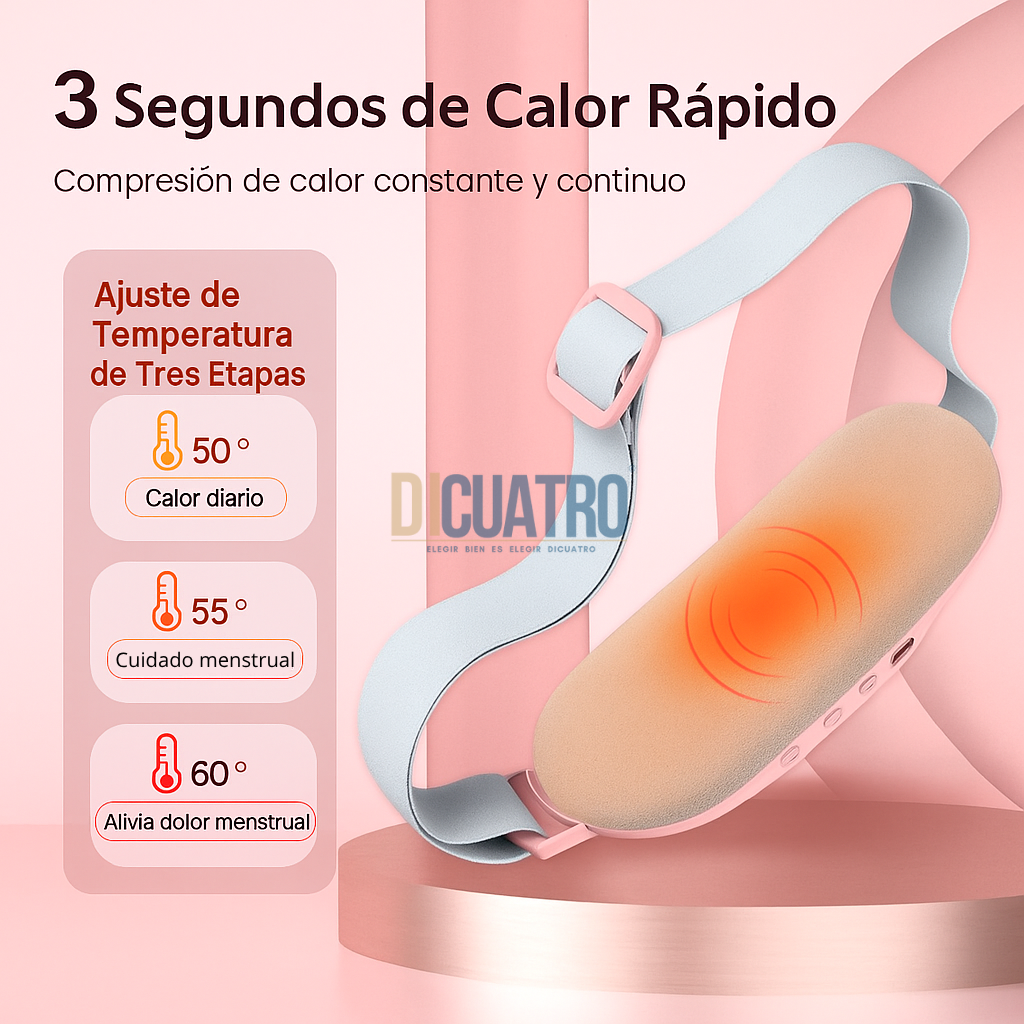 Elige entre 3 niveles de temperatura (50°, 55°, 60°) para aliviar cólicos o relajar la zona lumbar según lo que necesites.