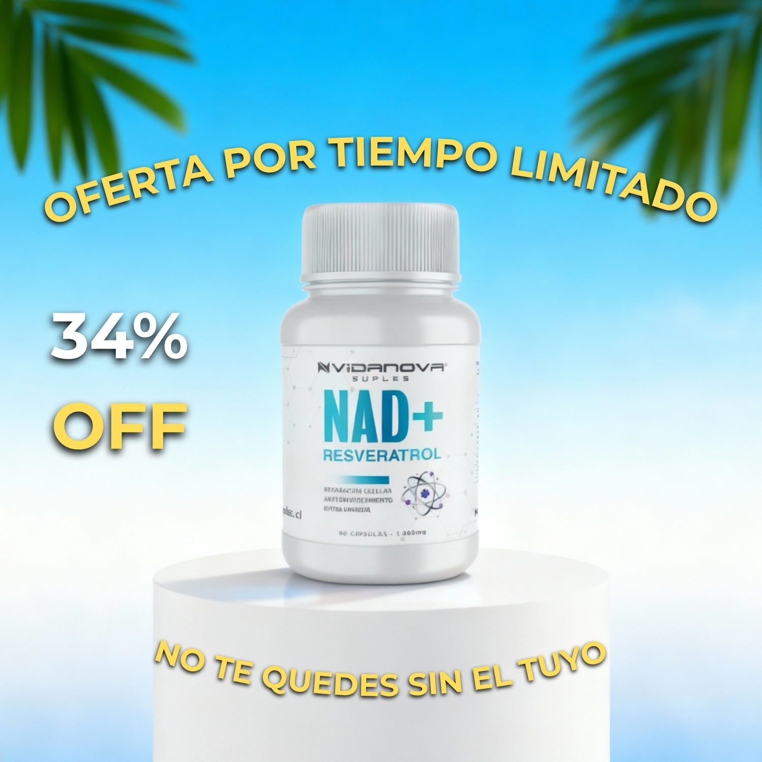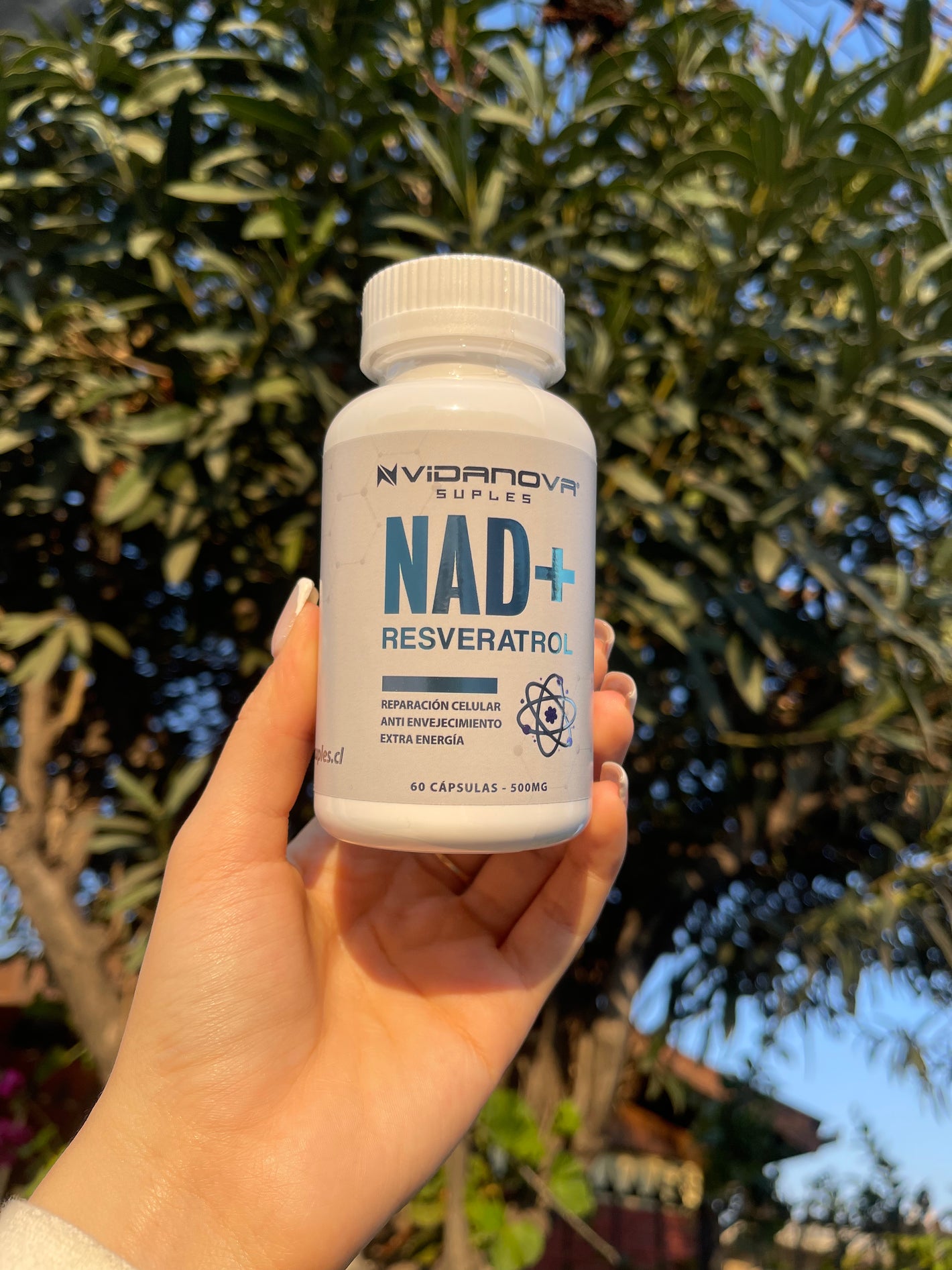 NAD+ Resveratrol combina antioxidantes y apoyo al metabolismo.